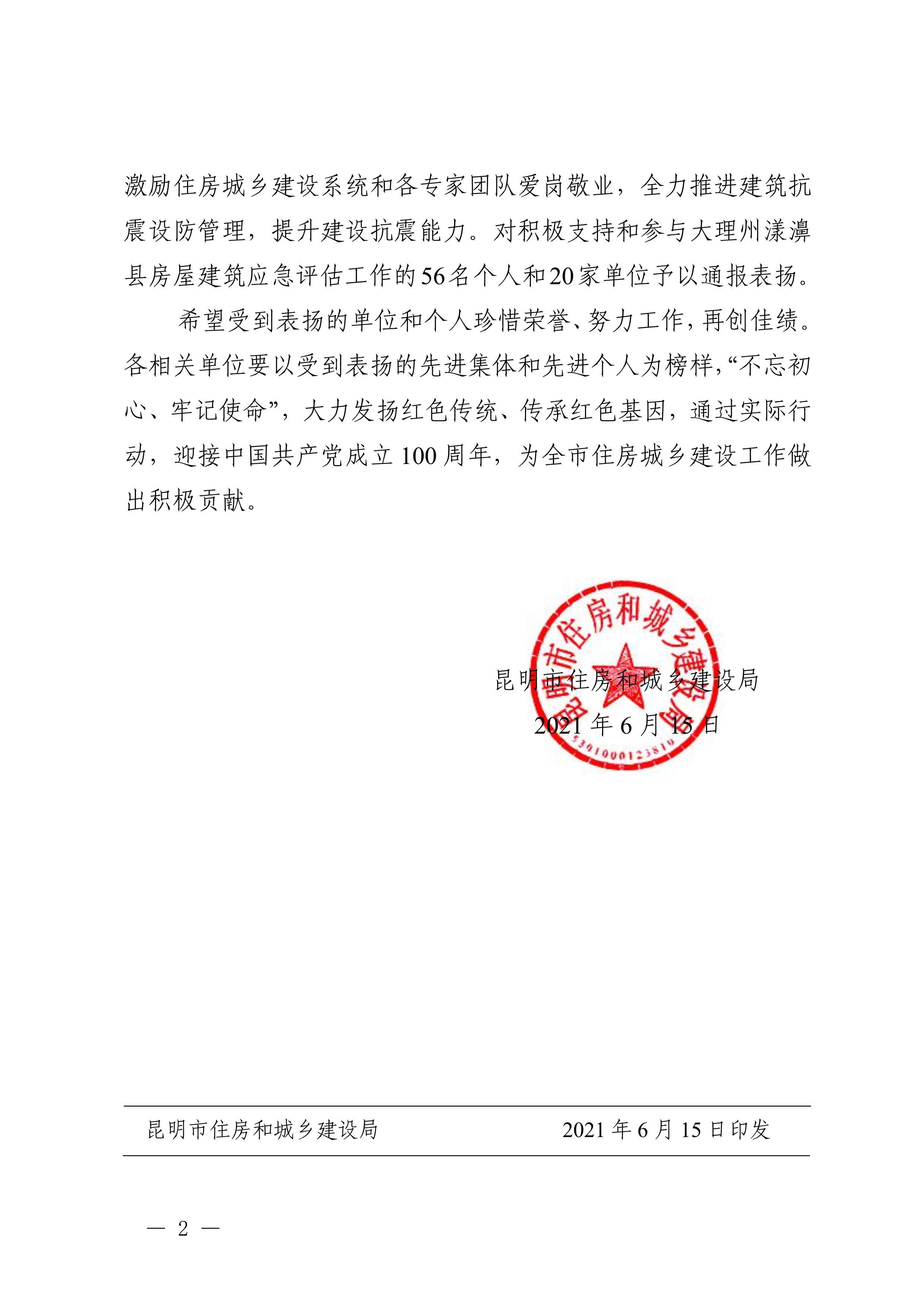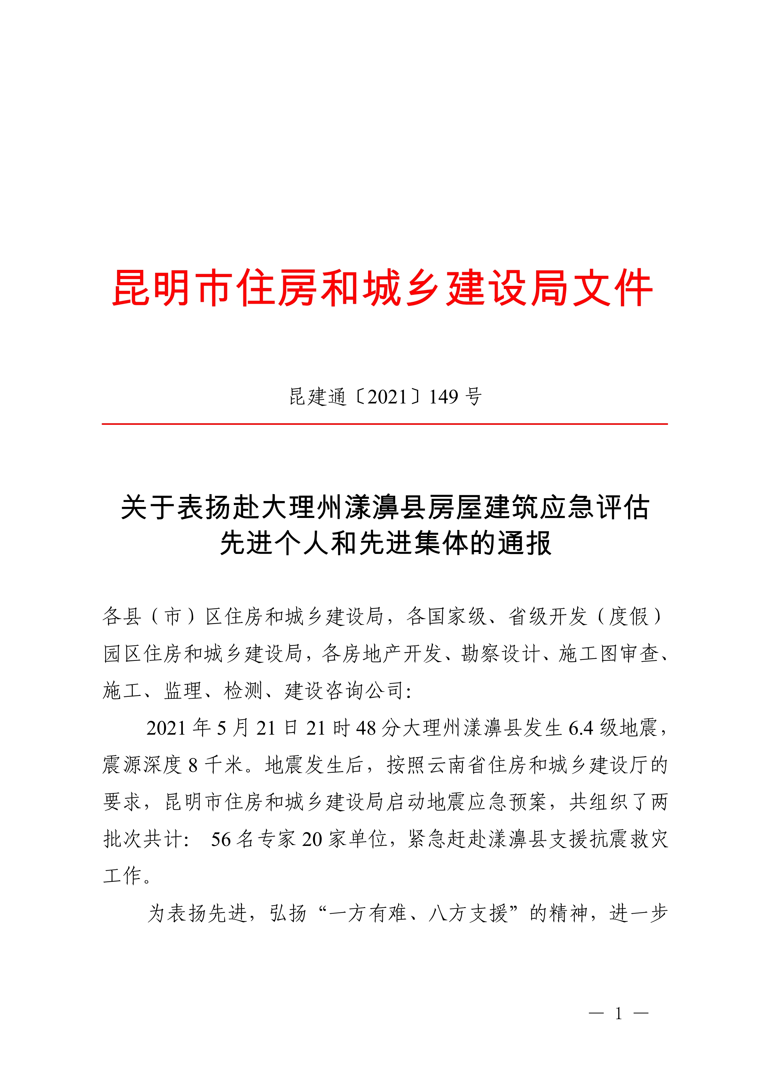 附件:《關(guān)于表揚赴大理州漾濞縣房屋建筑應(yīng)急評估先進(jìn)個人和先進(jìn)集體的通報》(昆建通〔2021〕149號)