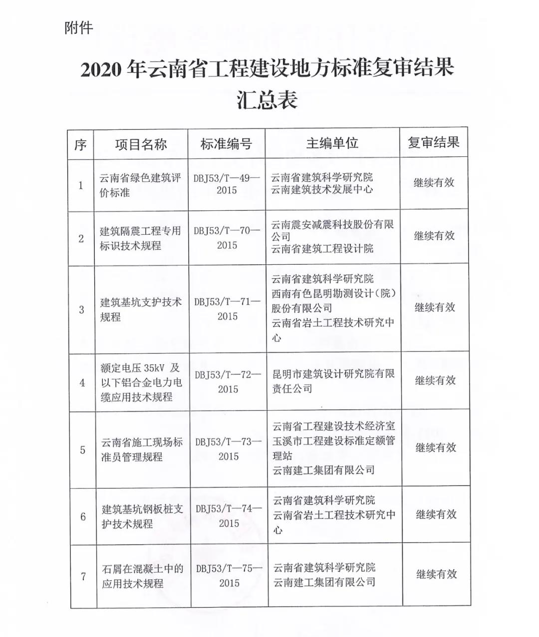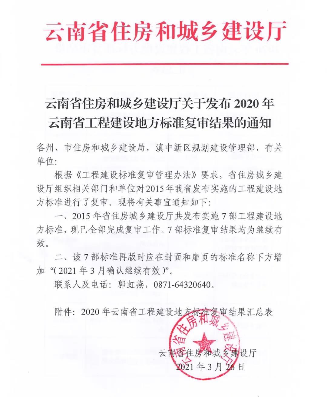 省住建廳關(guān)于發(fā)布2020年云南省工程建設(shè)地方標準復(fù)審結(jié)果的通知