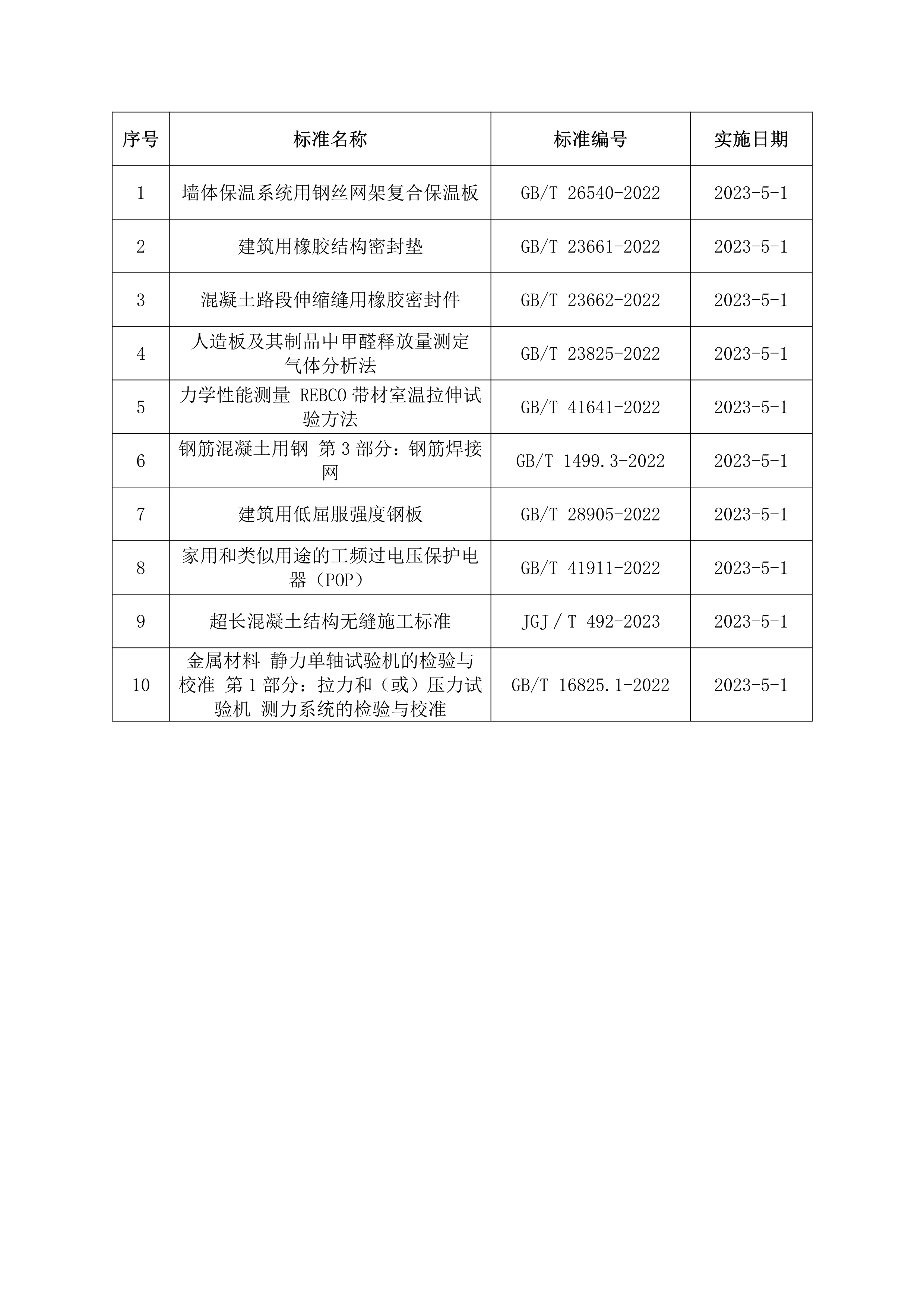 2023年5月開始實(shí)施的工程建設(shè)標(biāo)準(zhǔn)