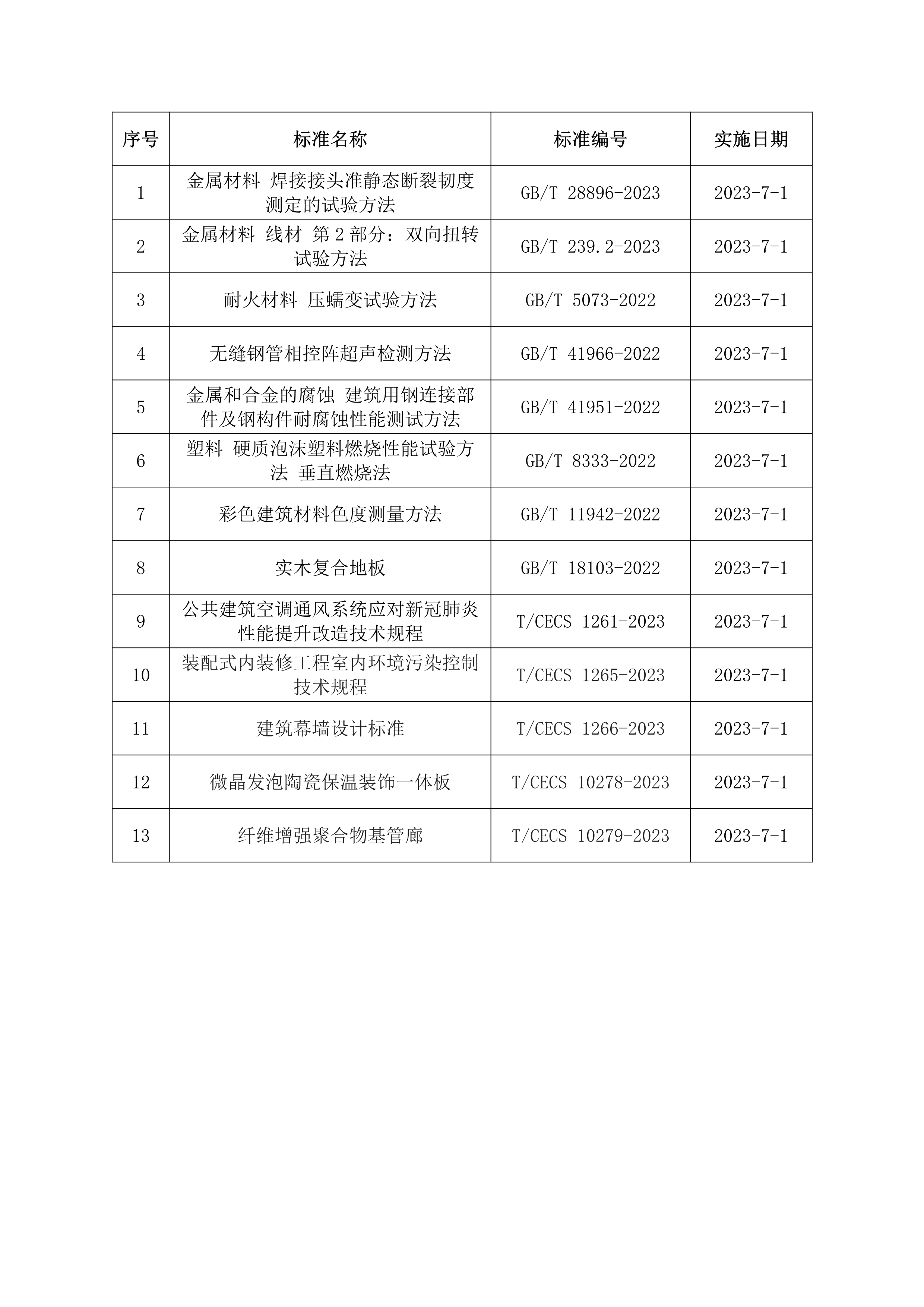 2023年7月開(kāi)始實(shí)施的工程建設(shè)標(biāo)準(zhǔn)